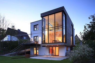 moderner kubistischer Einfamilienhaus-Neubau mit klarer Raumaufteilung